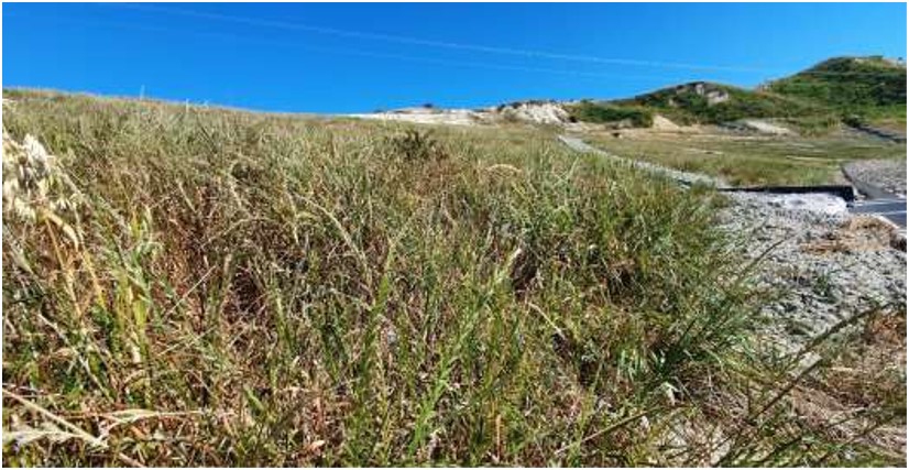 ESTATE 2019, dopo un anno dal trattamento i Prati Armati® sono cresciuti sulle argille di tutto il cantiere, durante l’estate le specie naturali e autoctone ingialliscono, come accade nei terreni circostanti, per poi rivegetare alle prime piogge autunno vernine